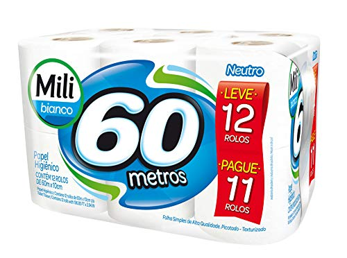 Papel Higiênico Mili Bianco Folha Simples Neutro 60m L12 P11