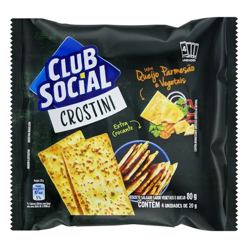 Biscoito Club Social Crostini Queijo Parmesão e Vegetais 80g