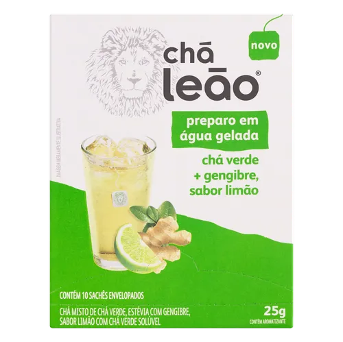 Chá Leão Água Gelada Chá Verde, Gengibre e Limão c/ 10 Sachês