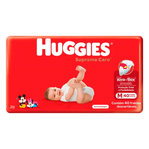 Huggie Supreme Care possui 4 pontos de ajuste e cintura elástica, proporcionando máximo conforto e proteção da barriguinha até as costas. Não contém fibras de algodão. Componente atóxicos não propensos a causar irritação em contato com a pele.