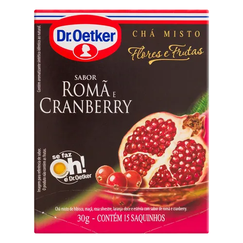 Chá Dr Oetker Flores e Frutas Romã e Cranberry 15 Sachês