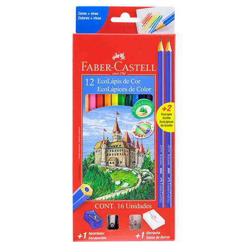 Kit Faber Castell Lápis de Cor C/12 + 2 Lápis Preto + 1 Apontador + 1 Borracha