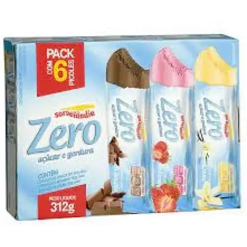 Picolé Sorvelândia ao Leite Chocolate, Morango e Creme Zero Açúcar c/6