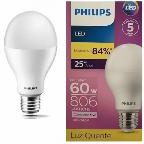 Lâmpada Philips Led Luz Quente 9w 806lm Bivolt
