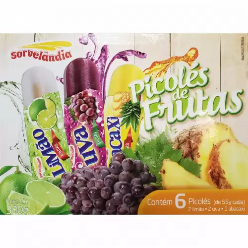 Picolé Sorvelândia de Frutas Limão, Uva e Abacaxi C/6