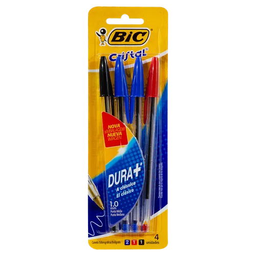 Caneta Bic Cristal 1.0mm 2 Azul 1 Preta e 1 Vermelha