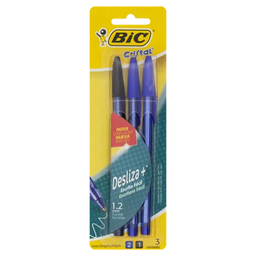 Caneta Bic Cristal 1.2mm 2 Azul e 1 Preta
