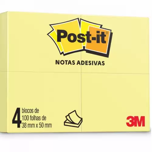 Notas Adesivas Post-it Amarelo 38x50mm 100 Folhas - C/4 Blocos